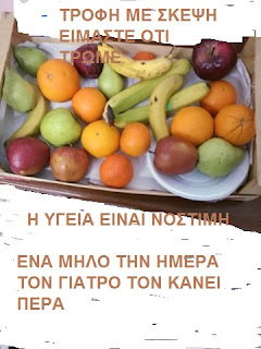 Η μέρα μας σήμερα ήταν αφιερωμένη στα φρούτα και τη διατροφική τους αξία .Αφού μιλήσαμε και είδαμε τα σχετικά βίντεο μοιραστήκαμε όλοι μαζί το δεκατιανό μας .Στόχος μας να εντάξουμε τα φρούτα στο καθημερινό μας διαιτολόγιο .Αγαπητοί γονείς η επόμενη εβδομάδα θα είναι αφιερωμένη στα λαχανικά. Θα σας δώσουμε πληροφορίες για τα είδη λαχανικών που θα βάλετε στο πρωινό των παιδιών σας .